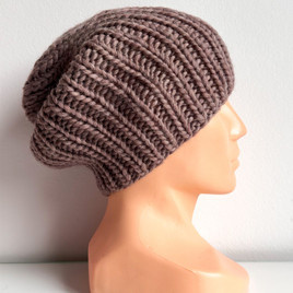 Czapka wywijana zrobiona ręcznie na drutach KIARA 100% Alpaka 501 Jasny Szary