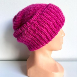 Ręcznie robiona czapka damska MORGANA Merynos, Alpaka z Jedwabiem 08/18 Fuksja
