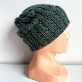 Ręcznie robiona Czapka wywijana LAURIN Melanż 100% Alpaka 506/100 Ciemny Szary