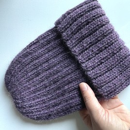 Czapka wywijana zrobiona ręcznie LAURIN 100% Alpaka 9023 Fioletowa Mgiełka