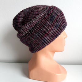Handmade Czapka damska AUREA Print Merynos plus moher i jedwab 15/55 fioletowy deszcz