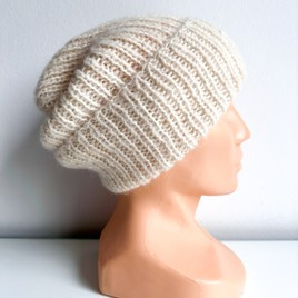Ręcznie robiona czapka damska MORGANA Alpaka z Jedwabiem 100/01 Ecru