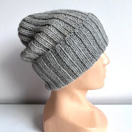 Czapka wywijana zrobiona ręcznie na drutach LAURIN 100% Alpaka 501 Jasny Szary