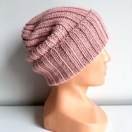 Czapka wywijana zrobiona ręcznie na drutach KIARA 100% Alpaka 9034 płatek róży