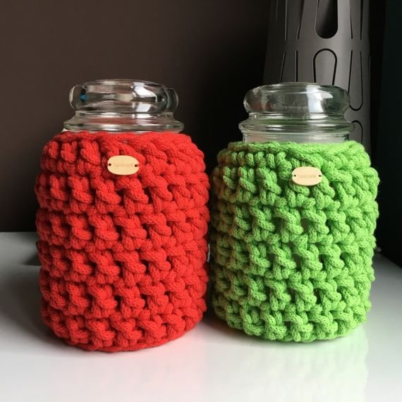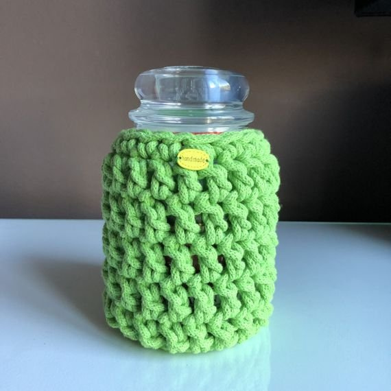 Ręcznie robiony Sweterek na świecę ze sznurka bawełnianego 128 limonka