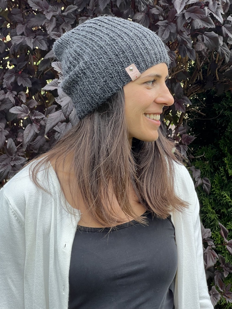 - Ręcznie robiona Czapka hand made Ściągacz 100% Alpaka Grafitt