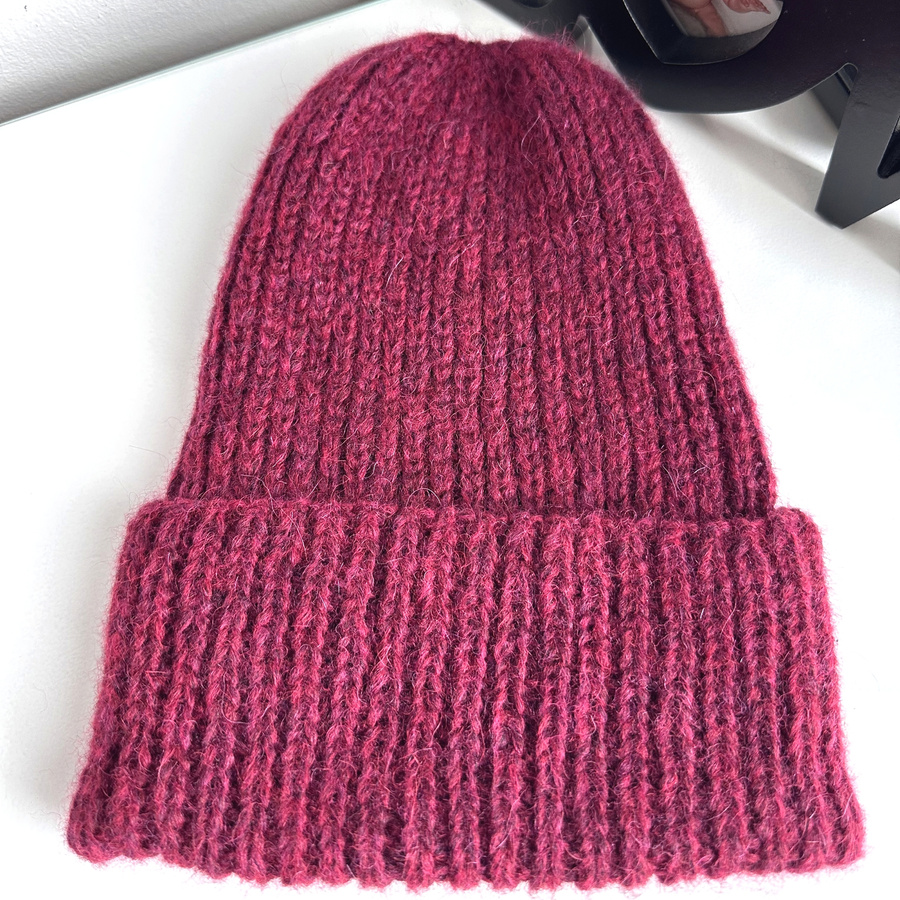 Ciepła czapka ręcznie robiona wywijana CHMURKA Alpaka 07 Rubinowa