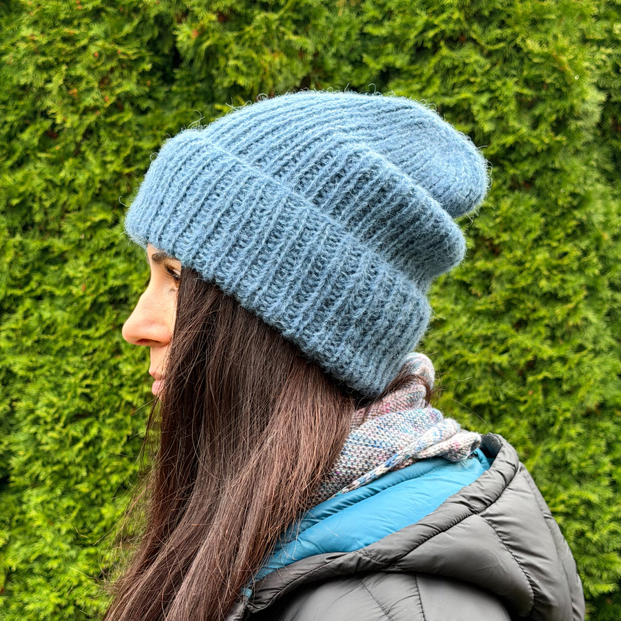 Ręcznie robiona czapka damska MORGANA Alpaka z Jedwabiem 6309/25 stalowy niebieski