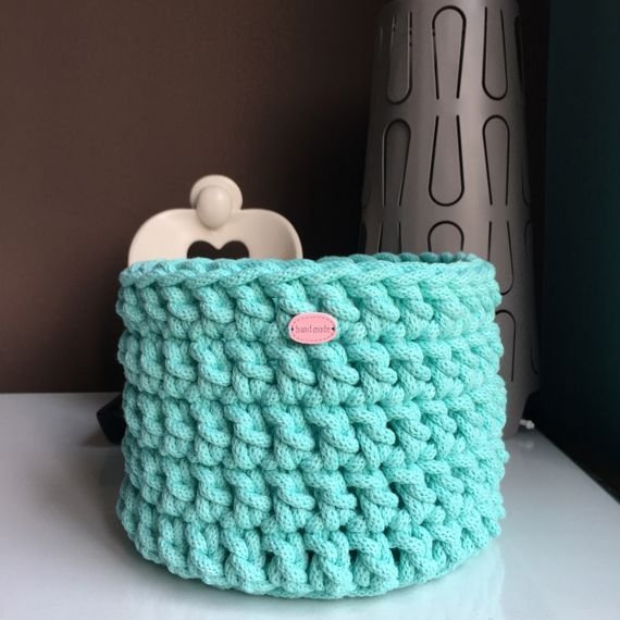 Ręcznie robiony Koszyk ze sznurka bawełnianego mięta 600 16x12,5 cm