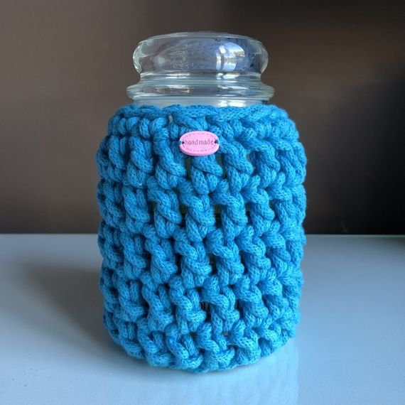 Ręcznie robiony Sweterek na świecę ze sznurka bawełnianego 430 turkus