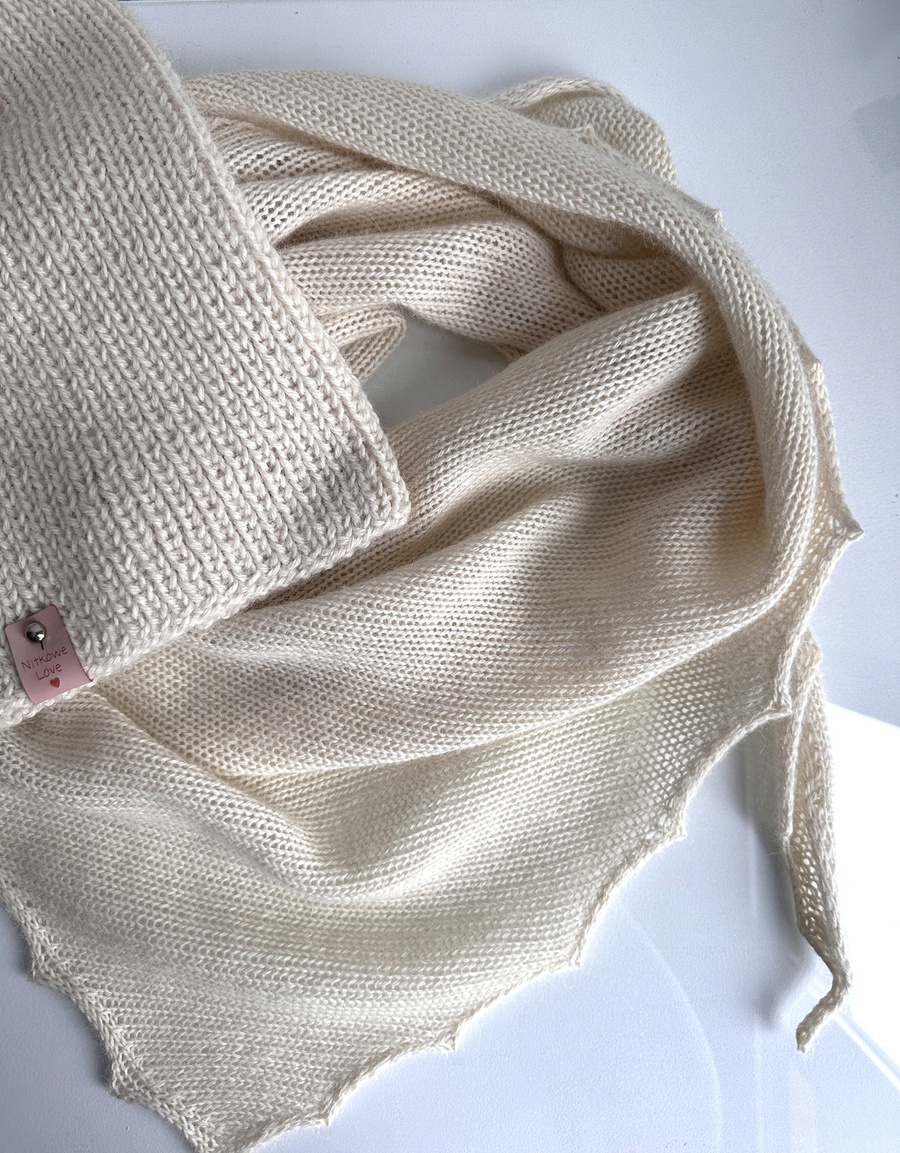 Urocza chusta ze 100% Alpaki. Wykonana gładkim ściegiem. Idealnie pasuje do czapki LAURIN lub KIARA.