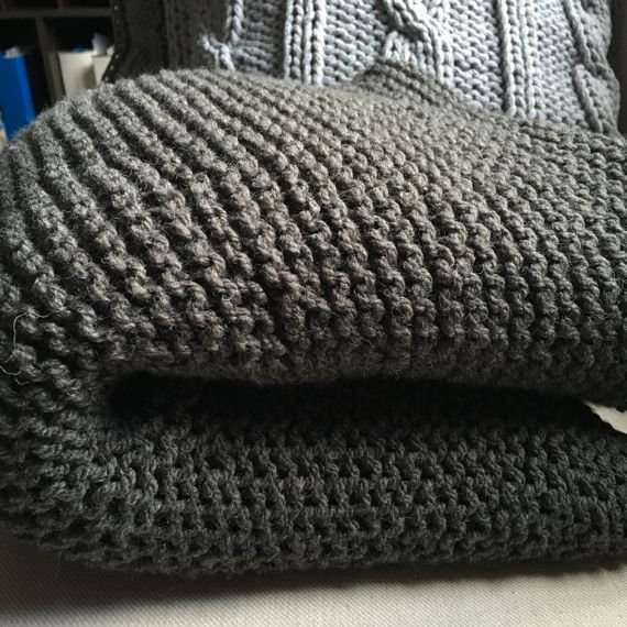 Ręcznie robiony Koc, gruby pled grafitowy 130x160 cm