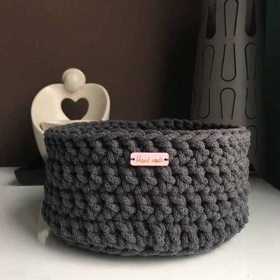Ręcznie robiony Kosz ze sznurka bawełnianego grafitt 800 20x10 cm