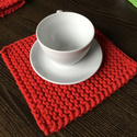 Podkładka kawowa ze sznurka bawełnianego czerwona 23x25 cm