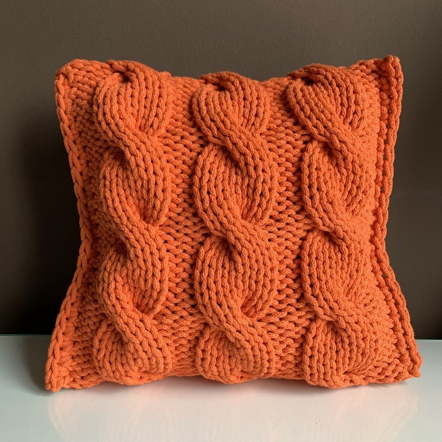 Poduszka ze sznurka bawełnianego Warkocze 350 pomarańczowa 40x40 cm