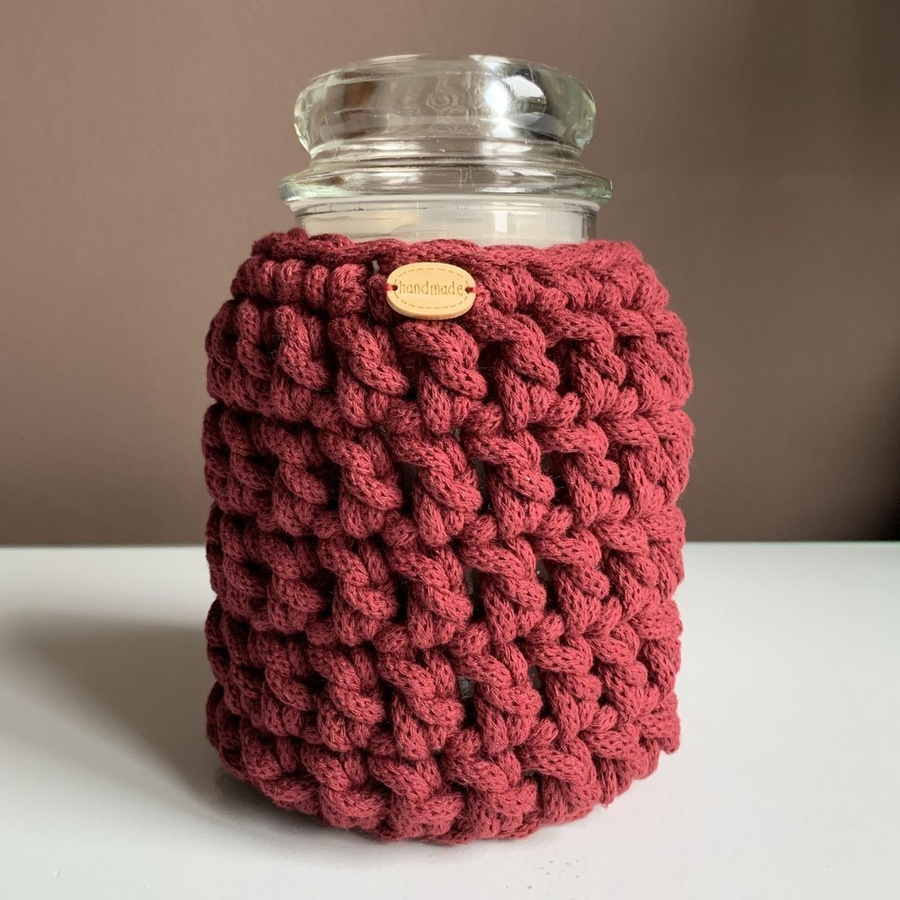 Ręcznie robiony Sweterek na świecę ze sznurka bawełnianego 380 bordowy