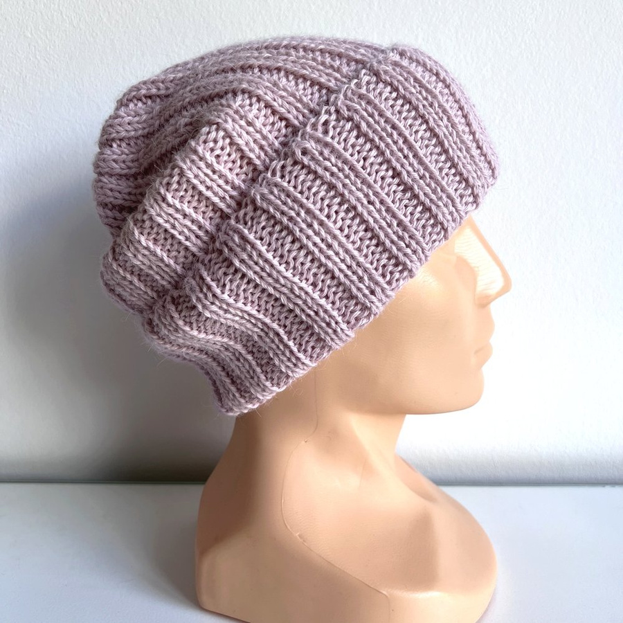 - Czapka wywijana zrobiona ręcznie na drutach Prążki 100% 3112 Różowy z nutką beżu. Inne kolory na zamówienie