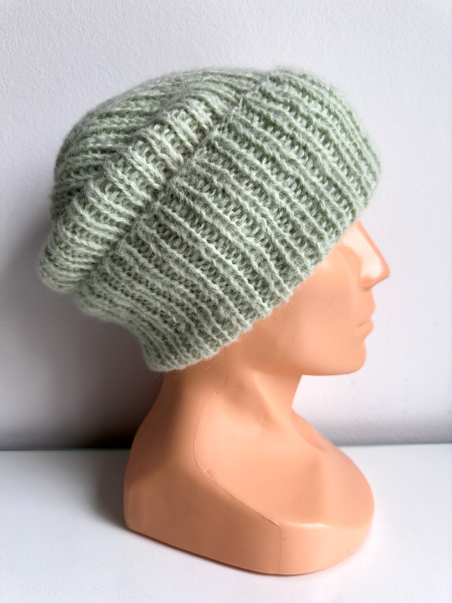 Ręcznie robiona czapka damska MORGANA Alpaka z Jedwabiem 9030/33 Lody Pistacjowe