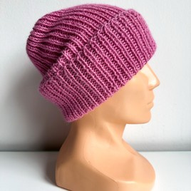 Czapka wywijana zrobiona ręcznie na drutach KIARA 100% Alpaka 100 Ecru