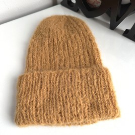 Ręcznie robiona czapka damska WATA CUKROWA Alpaka z Merynosem 18 Musztarda