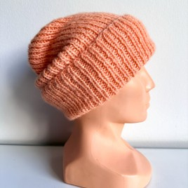 ( Anzahl der Produkte: 7 )Ciepła czapka ręcznie robiona wywijana CHMURKA Alpaka 54 Słodka Morela