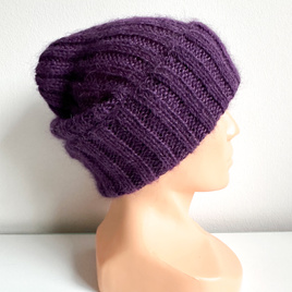 Ręcznie robiona Czapka wywijana MARGARET 100% Alpaka + nitka moher i jedwab 4400/16 Ciemnofioletowy
