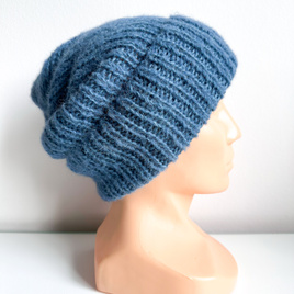 Ręcznie robiona czapka damska MORGANA Alpaka z Jedwabiem 6309/25 stalowy niebieski