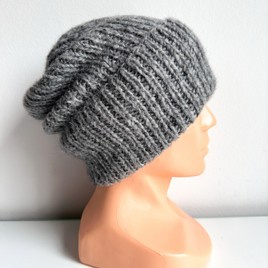 Ciepła czapka ręcznie robiona wywijana CHMURKA Alpaka 04 średni szary
